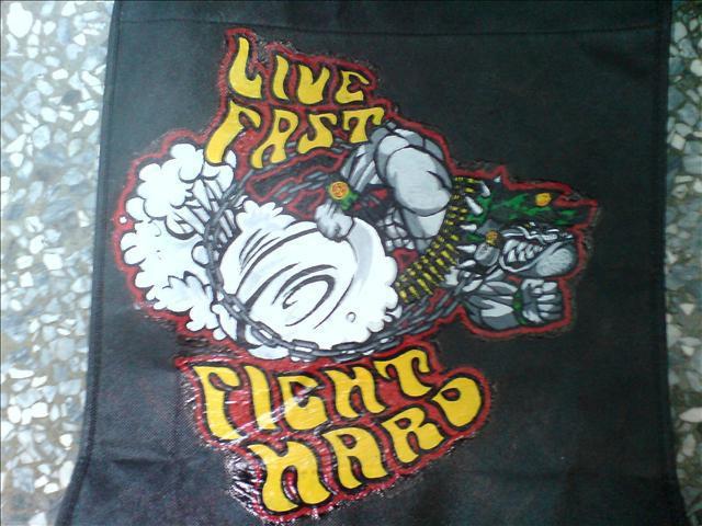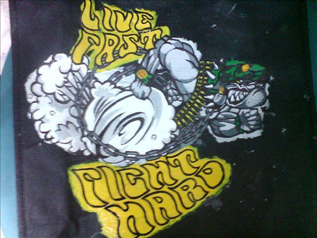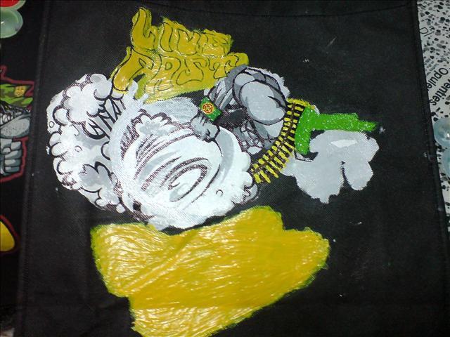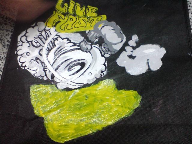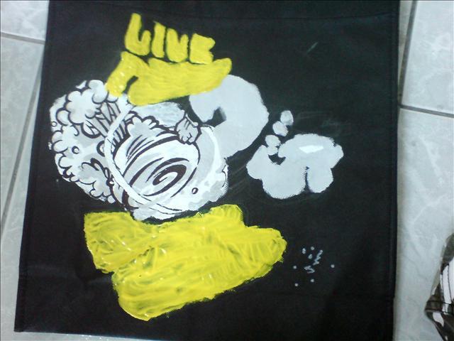 準備:壓克力顏料.廉價袋子.水彩筆.調色盤.油性簽字筆.4B鉛筆.噴霧亮光漆
