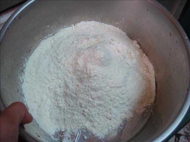 3.將高筋麵粉和低筋麵粉以3:1的比例調配