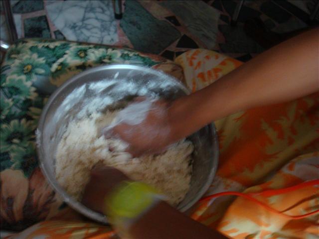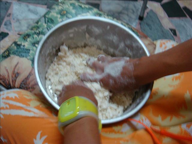 4.加入一顆蛋和水一直搓揉