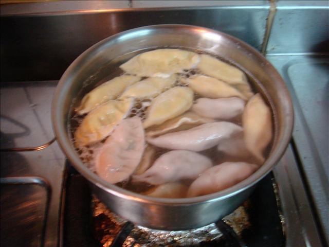 14.然後再把其他沒煮的水餃放到滾水裡面煮,水裡放少許鹽跟醋